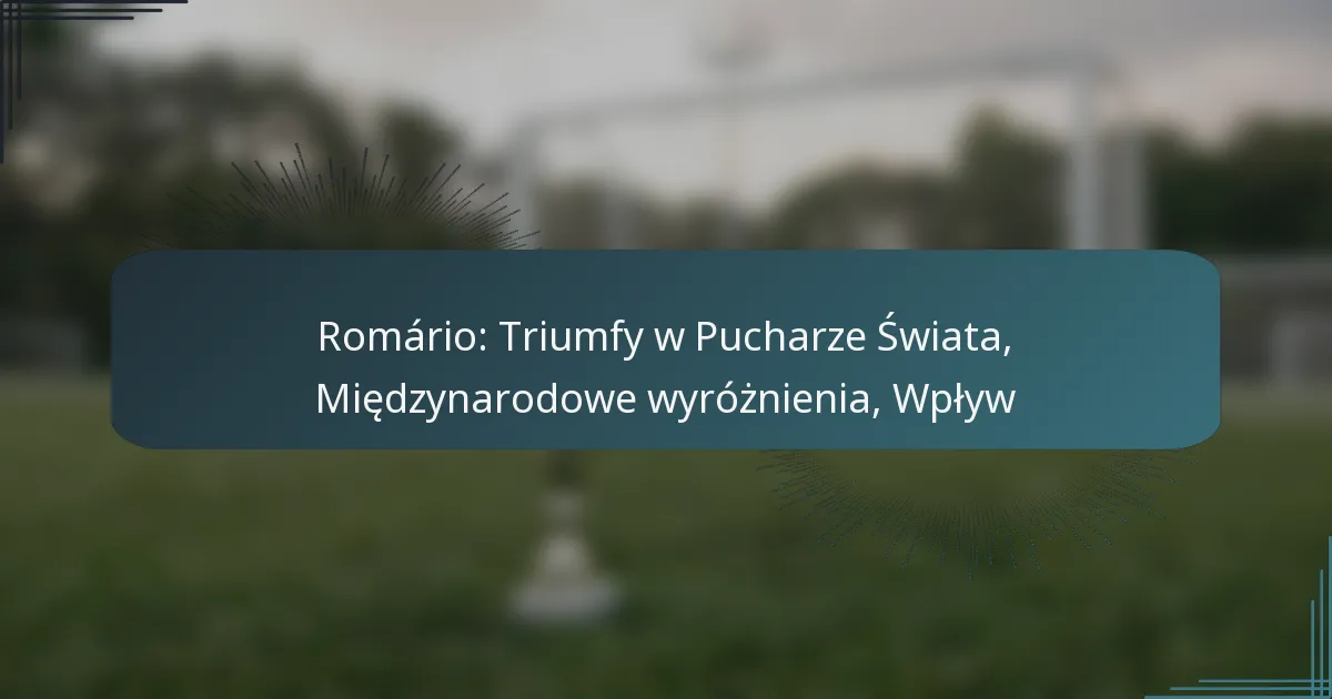 Romário, legendarny brazylijski piłkarz, otrzymał liczne międzynarodowe wyróżnienia w trakcie swojej kariery, w tym tytuły Mistrza Świata FIFA, nagrody indywidualne i uznania, które umocniły jego status w historii futbolu. Jego osiągnięcia podkreślają nie tylko jego wyjątkowy talent, ale także znaczący wpływ na brazylijski futbol i scenę globalną.